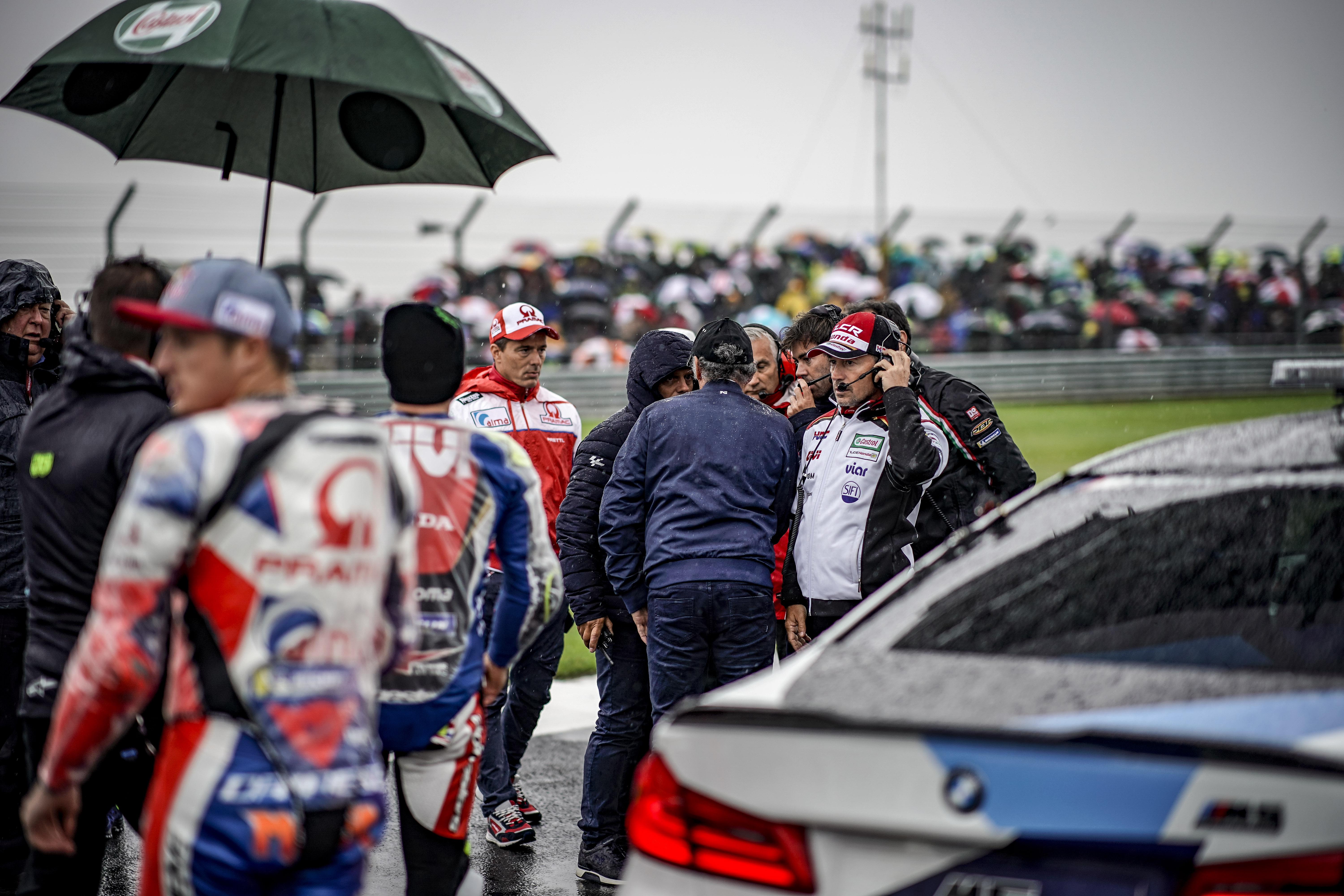 I tifosi Britannici dovranno attendere il prossimo anno per assistere alla gara di casa del pilota LCR Honda CASTROL Cal Crutchlow. Purtroppo causa pioggia persistente, asfalto insidioso, e svariati ritardi i piloti della classe regina in accordo con la Direzione Gara hanno deciso di non scendere in pista dando giustamente priorità a loro sicurezza.