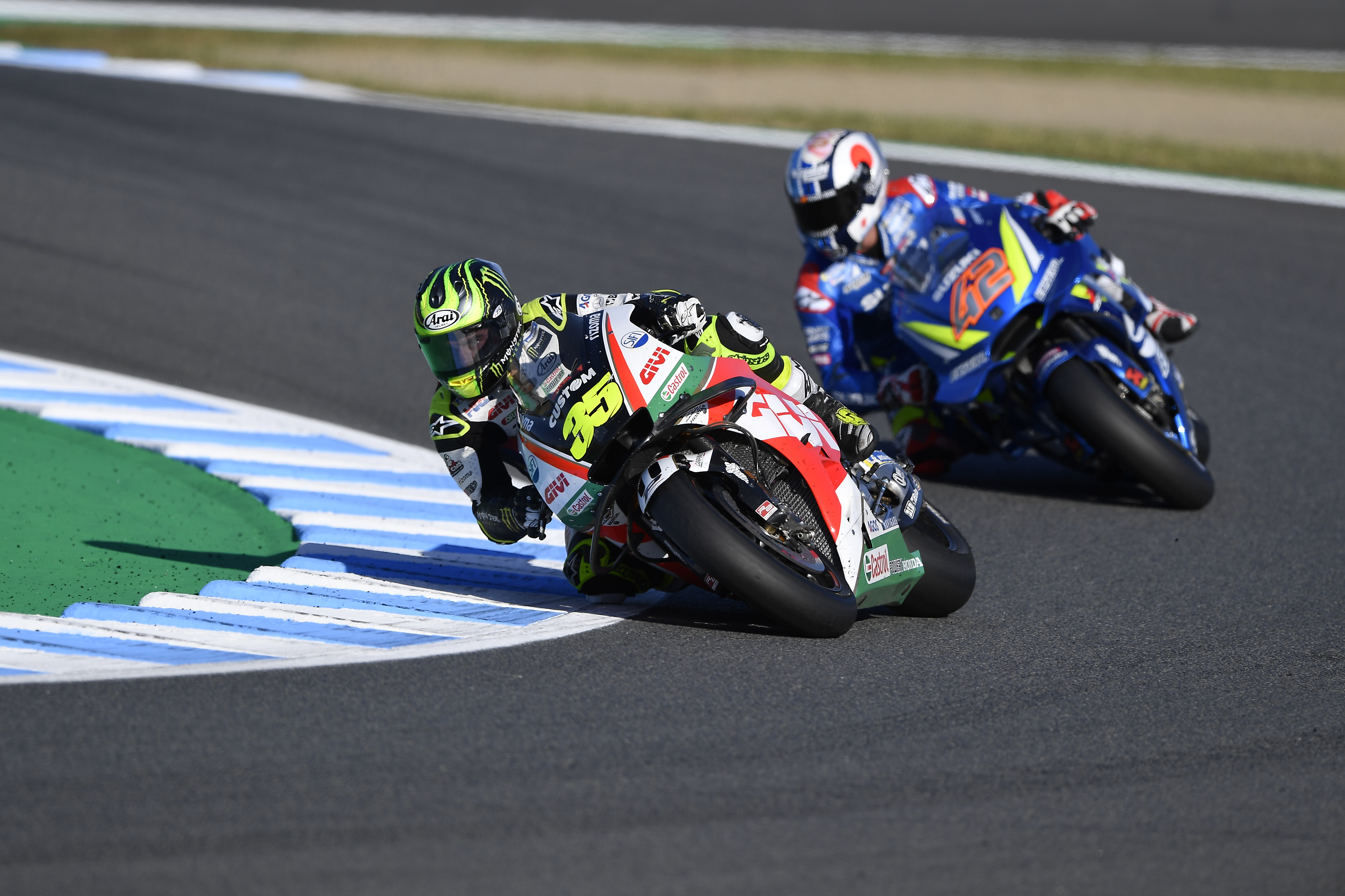 Il pilota del Team LCR Honda CASTROL Cal Crutchlow sale sul secondo gradino del podio a Motegi per concludere in maniera eccellente il GP di casa della Honda. Partito dalla quarta casella in griglia il Britannico è rimasto incollato al gruppo di testa battagliando fino alla fine con Dovi e Marquez. Il pilota Ducati è scivolato fuori pista a pochi giri dalla fine dando l’opportunità a Marquex di conquistare il Titolo Mondiale mentre Rins chiude terzo dietro a Crutchlow.